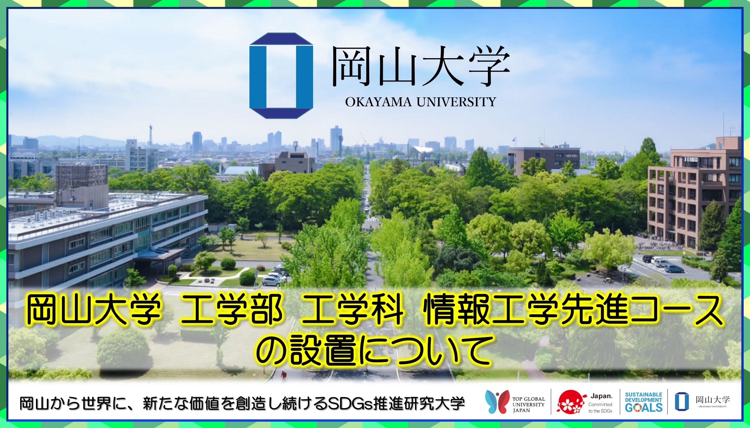 国立大学法人岡山大学は、国連の「持続可能な開発目標(SDGs)」を支援しています。また、政府の第1回「ジャパンSDGsアワード」特別賞を受賞しています。地域中核・特色ある研究大学:岡山大学にご期待ください