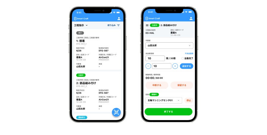 Smart Craftは、製造現場の生産指示、工程管理、実績収集、データ分析といった一連の業務プロセスをタブレットやスマートフォンなどのモバイル端末を活用しデジタル化できるクラウドサービスを開発・提供しています。これまで紙やExcel等で行ってきた製造現場のアナログ業務をデジタル化することで、現場状況をリアルタイムで見える化し、製造データを一元集約します。Smart Craftの提供を通じてDXを支援し、生産性向上を実現します。