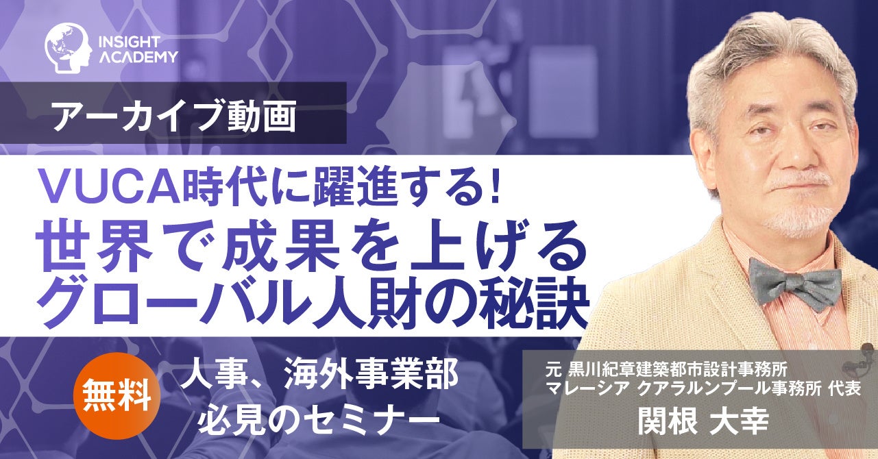 グローバル⼈材育成・研修業を⼿掛けるインサイトアカデミー株式会社(本社:東京都港区六本⽊、代表取締役:北村嘉章)は、人事部や海外事業部から⼤好評だった海外駐在員セミナー「世界で成果を上げるグローバル人財の秘訣」のアーカイブ無料配信を開始いたしました。