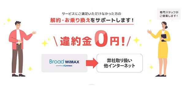 当プランに加入のお客様がインターネットの解約・乗り換えを行う場合、サービス違約金無料で他のインターネットサービスへお乗り換えいただけます。