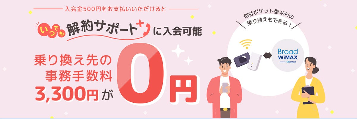 『いつでも解約サポートプラス』はBroadWiMAXをご利用のお客様のみならず、他社のポケット型Wi-Fiをご利用のお客様もご入会いただけます。