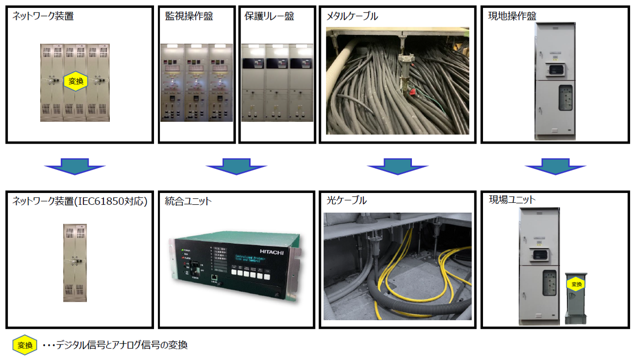 〇東日本旅客鉄道株式会社(以下、JR東日本)、株式会社日立製作所(以下、日立)は、共同で開発したフルデジタル変電所システムを、2025年度以降に導入します。 〇本システムを導入することにより、変電所構内の伝送路および保護・制御機能の二重化が可能となり、電力の安定供給による鉄道の安定輸送に貢献します。さらに、設備のスリム化による工事の省力化が可能になります。 〇JR東日本と日立は、今後も電力の安定供給と変電所のデジタル化にともに取り組みます。 |