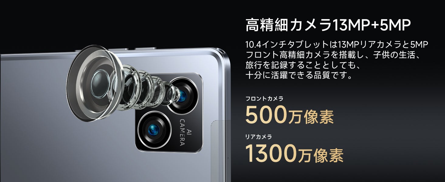 10.4インチタブレットは13MPリアカメラと5MPフロント高精細カメラを搭載し、子供の生活、旅行を記録することとしても、十分に活躍できる品質です。