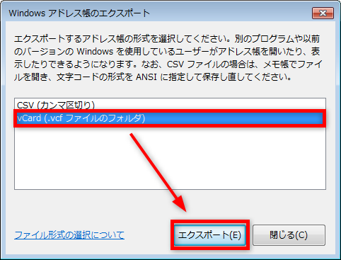 Step4.「vCard」フォーマットを選択し、次に「エクスポート」をクリックします。