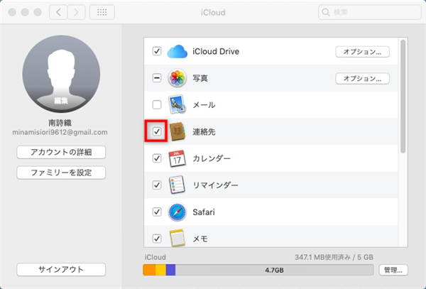 これにより、Mac上での設定が完了し、連絡先情報がiCloudに同期されます。