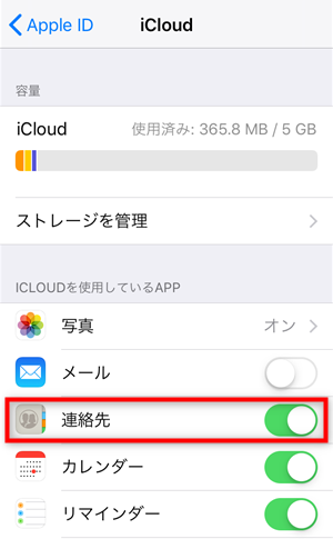 Step4.画面に表示されたアプリの一覧から、「連絡先」を選択します。