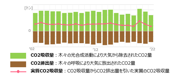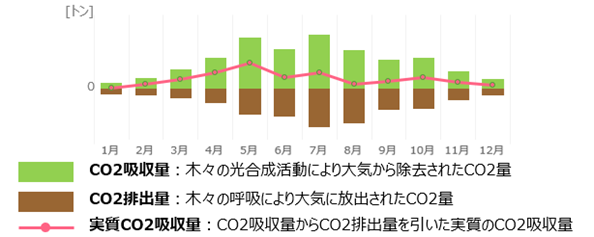 ・CO2吸収レベル分布図や月次、年次等の推移および比較グラフを分かりやすく視覚化しました。