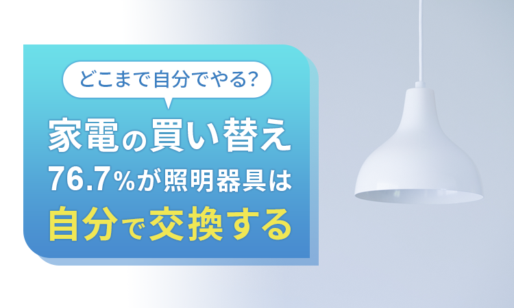 76.7%の方が照明器具は「自分で交換する」と回答していますが、一方で13.9%の方が「自分で家電を交換しようとしたが、業者に頼めば良かったと後悔した経験がある」と回答しています。