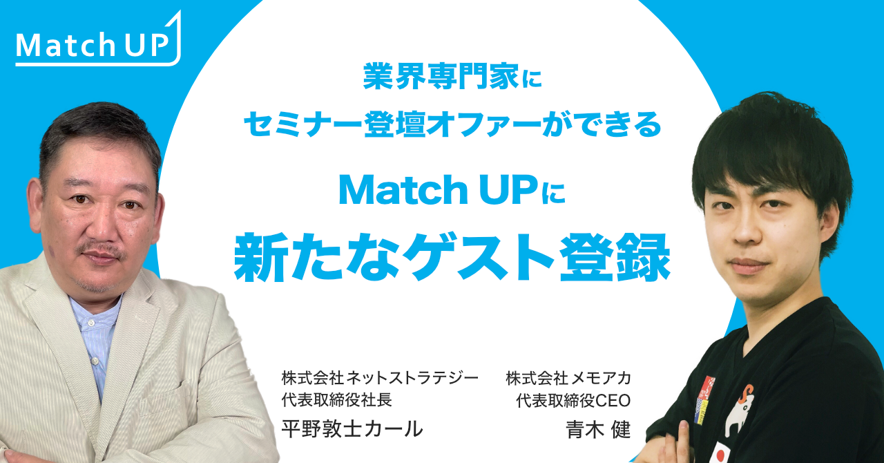 当社は、国内最大級のオンライン展示会「ITトレンド」や、ビジネス動画プラットフォーム「チラヨミ」を通して、多くの企業様、業界専門家の方とのお取引があり、自社のマーケティングノウハウを活かし、このような課題を解消するため、業界専門家にセミナー登壇オファーができるマッチングプラットフォーム「Match UP」の提供を開始いたしました。