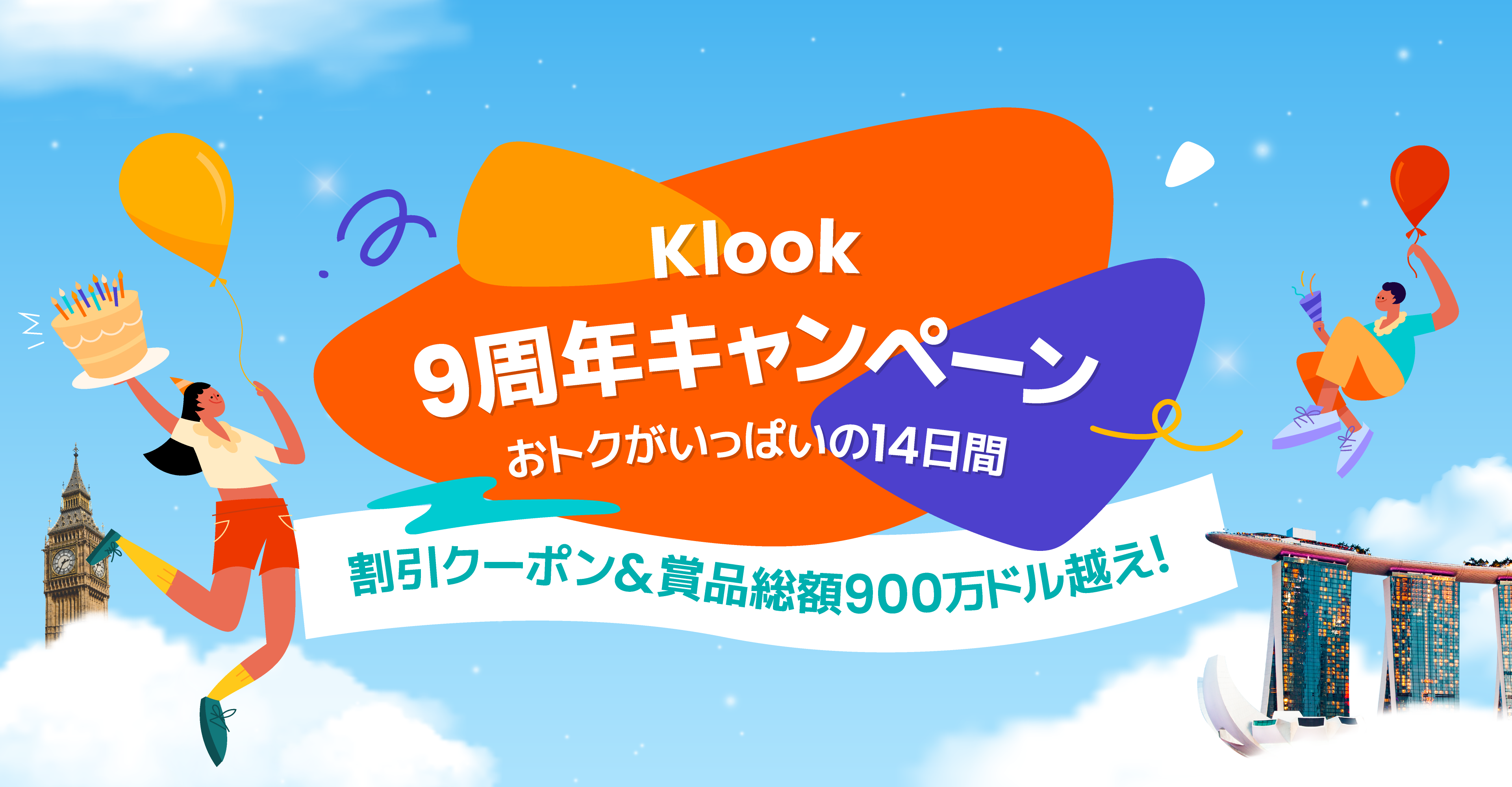 Klookの9周年と年末の旅行シーズンを迎え、Klookは過去最大規模のキャンペーンを開催します。全世界で総額900万米ドル相当を提供するこのキャンペーンは、9月8日から22日の期間中、数々のお買い得品や景品を取りそろえています。