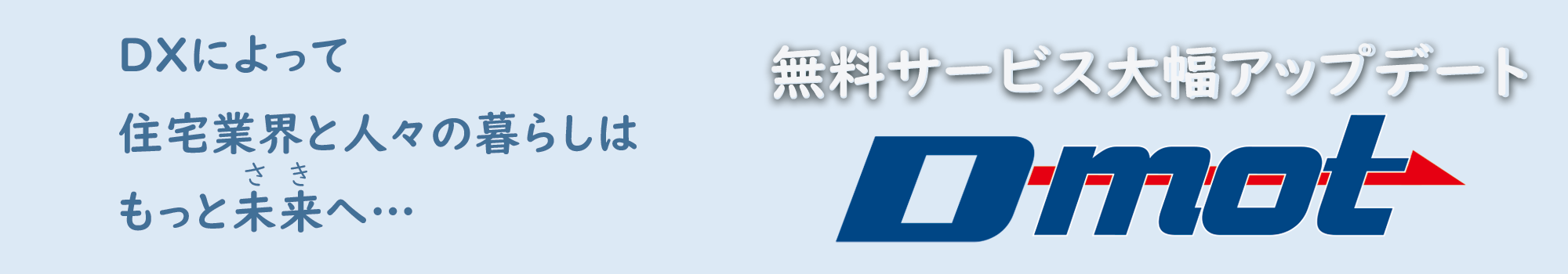 「D-mot」は、ITを活用した複数のコンテンツを盛り込み、地場建築業界にとって導入ハードルが高いDXをサポートする無料サービスです。より多くのビルダー・工務店が導入できるよう、2022年11月より無料でサービスを提供することとなりました。