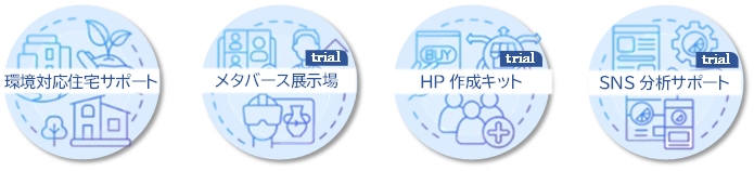 近年のコロナ禍やエネルギー高騰を経て、住宅業界ではこれまでの延長線上ではない、効率化が必須となりました。本課題を解決すべく、この度、中小工務店へのリサーチ・インタビューを通じて浮き彫りとなった「DXを活用した集客」、「エンドユーザーへのエネルギーコスト抑制提案」の需要に対する以下4コンテンツを追加投入し、サービスをより拡充することとなりました。