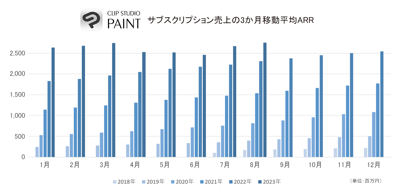 「CLIP STUDIO PAINT」サブスクリプションモデルの契約数は、2023年5月にセキュリティ強化を目的とした決済システムの変更を行った際に、一時的に減少しましたが、決済システム変更完了後の新規契約は順調に推移しており、今後も、従来通りの伸びを見込んでいます。