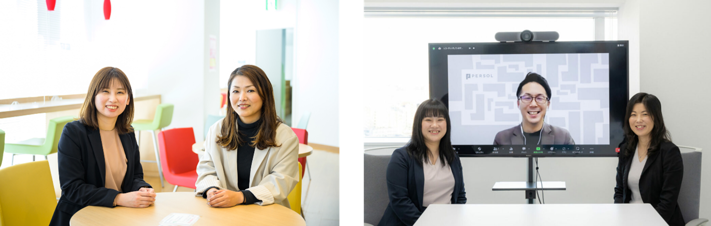 写真左から、女性活躍推進を牽引する管理職、社内活動に取り組む社員