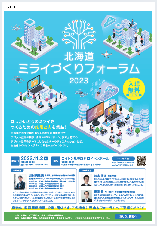 北海道ミライづくりフォーラム2023事務局 mail:mirai2023-ml@east.ntt.co.jp