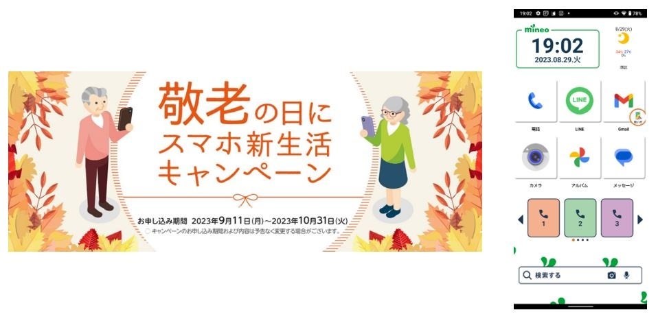 mineoでは、今回のキャンペーンや2023年8月23日より増額された家族割引でよりおトクにスマートフォンをお使いいただくことに加えて、「Yahoo!きせかえ」アプリ(mineoユーザー向けきせかえテーマ)を使用いただくことで操作への苦手意識を払拭し、ご家族、ご夫婦でスマートフォン生活を楽しんでいただくきっかけになればと考えております。