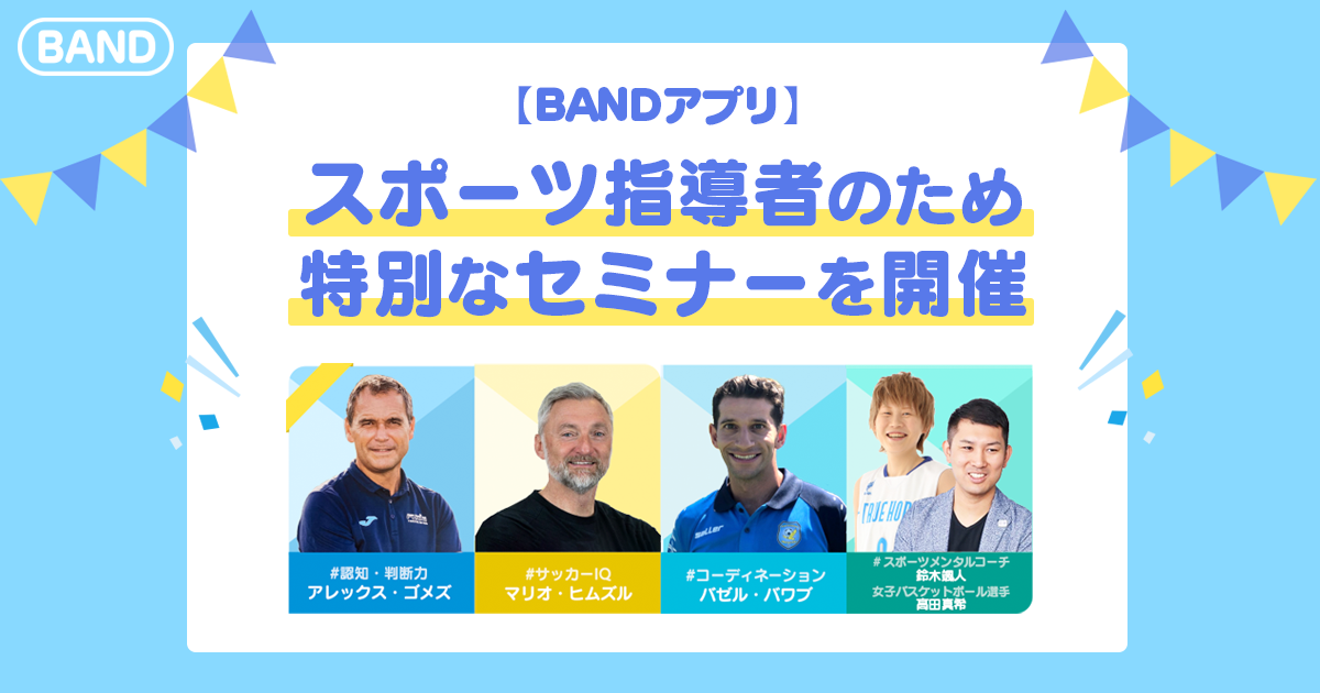 「BAND」は、ドイツなどグローバルサッカーに専門家を招待し、スポーツ指導者のための”無料オンラインセミナー”を4週間にわたっておこなう「BAND for Sports キャンペーン」開催中です!