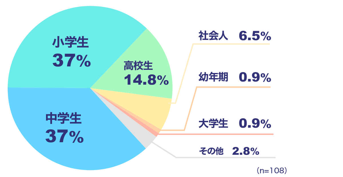 小学生と中学生が各37%で一番多かったです。次に、高校生と社会人との回答がありました。