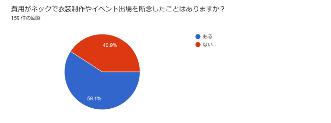 ・59.1%が費用がネックとなって衣装制作やイベント出場を断念した経験あり