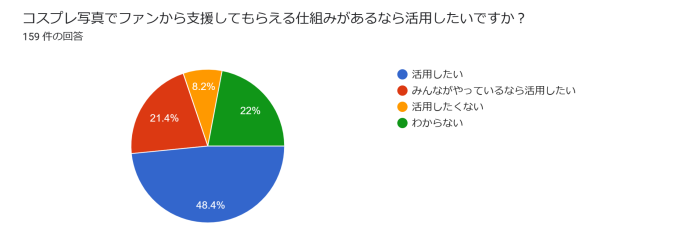 一方で、半数近くは収益化に至っていないことから、コスプレイヤーへの還元の仕組みはまだじゅうぶんではないことも浮かび上がりました。