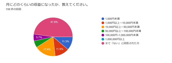 ・約3割が月に1万円以上の収益化に成功!中には10万円以上の売り上げを獲得する人も。