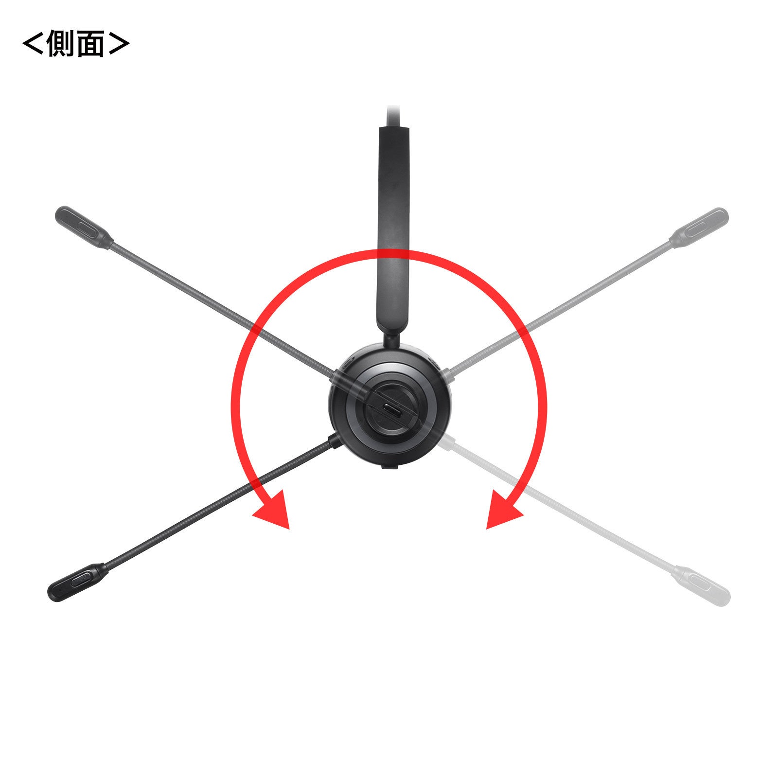 マイク部分は回転するので、左右どちらの耳でもマイクを装着できます。