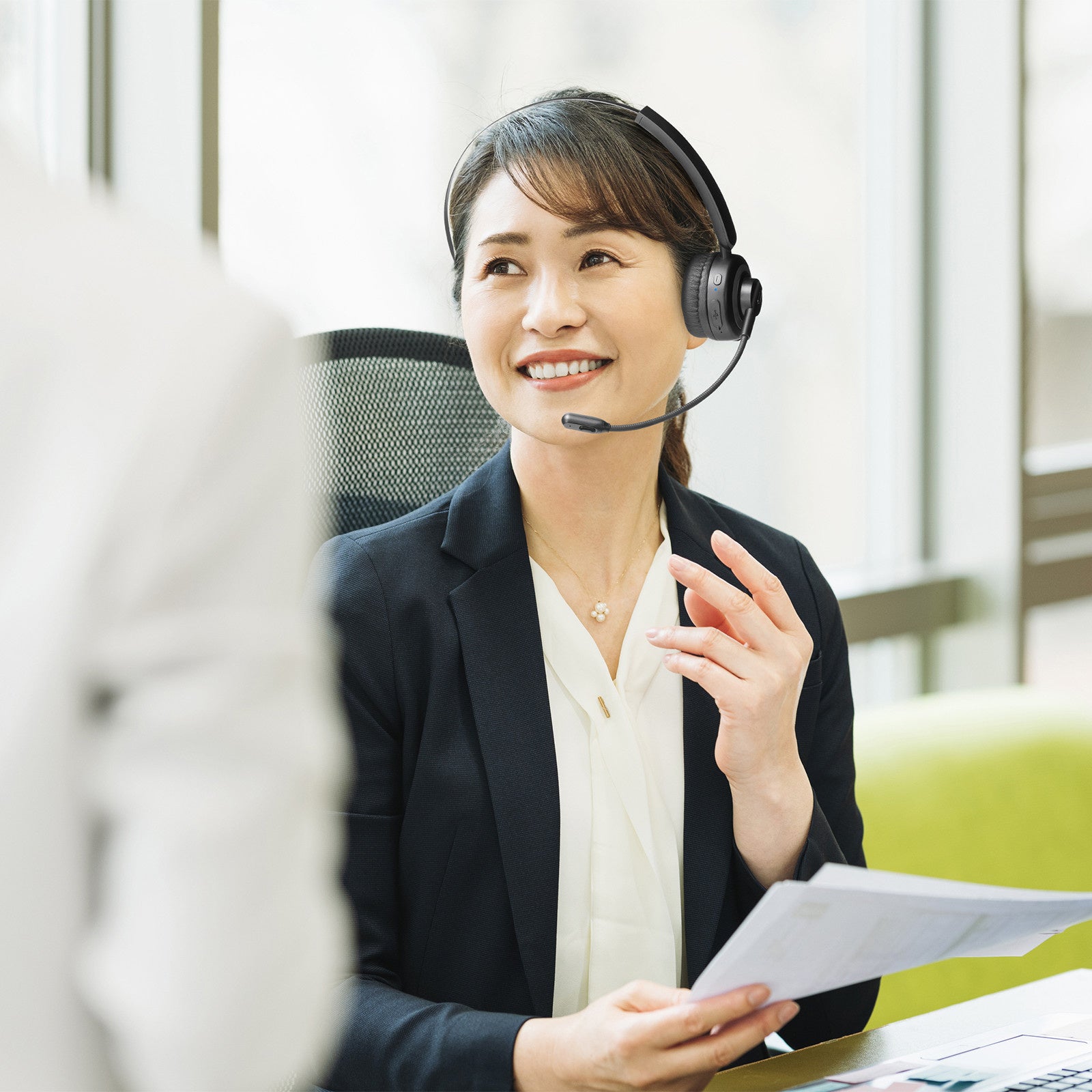 また、片耳タイプなので同時に周囲の人とのコミュニケーションがしやすく、パソコンを使用してのコールセンター業務やテレワーク、WEB会議にも最適です。
