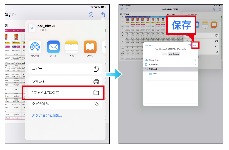 ステップ3、「ファイル」に保存をタップし、USBの名前を選択し、「保存」をタップすれば完成です。