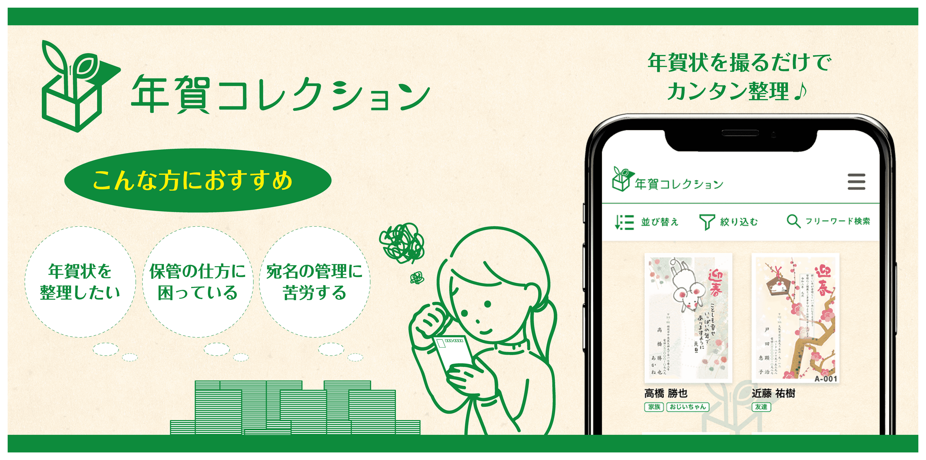 年賀状をスマートフォンのカメラ機能で撮影するだけでデータが取り込めるので、簡単で手間がかからないところが人気のようです。