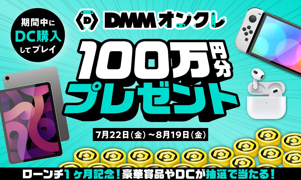 本キャンペーンでは、実施期間中に毎週1回(計4回)抽選を行います。DMMアカウントと連携済み、かつ期間中にDMMオンクレ内でDC(※1)を購入された方が対象となります。また、本キャンペーン期間中に、4週連続でキャンペーンに参加された方限定で、更に豪華景品が当たるチャンス(※2)もありますので、是非ご参加ください。