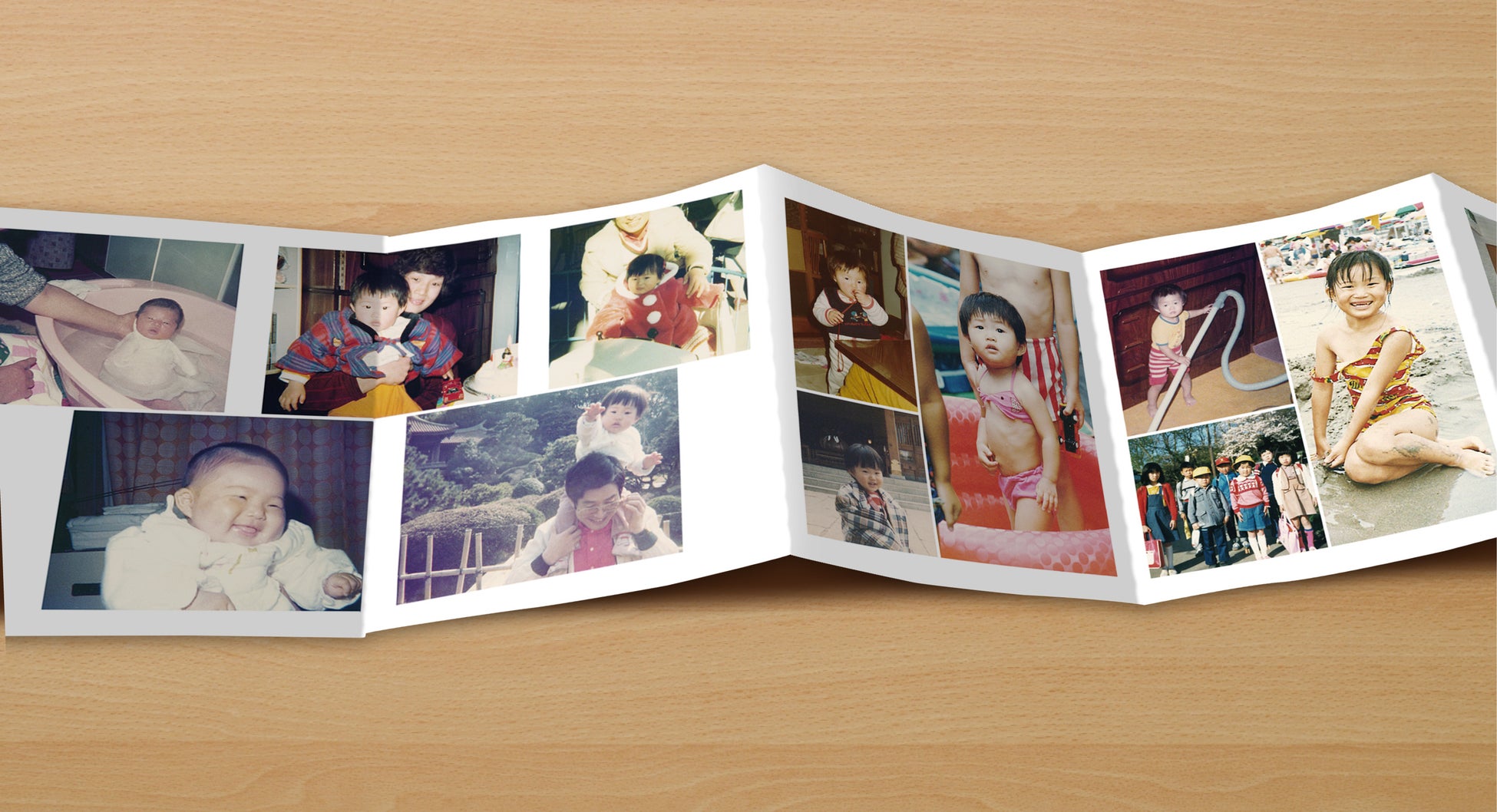 『パノラマアルバム Bird(バード)』は冊子としてページをめくるだけでなく、横に広げて時の流れを見通すことができ、連なって写真を見ることができるので、まるで絵巻物の世界に入り込んだような感覚を楽しむことができます。