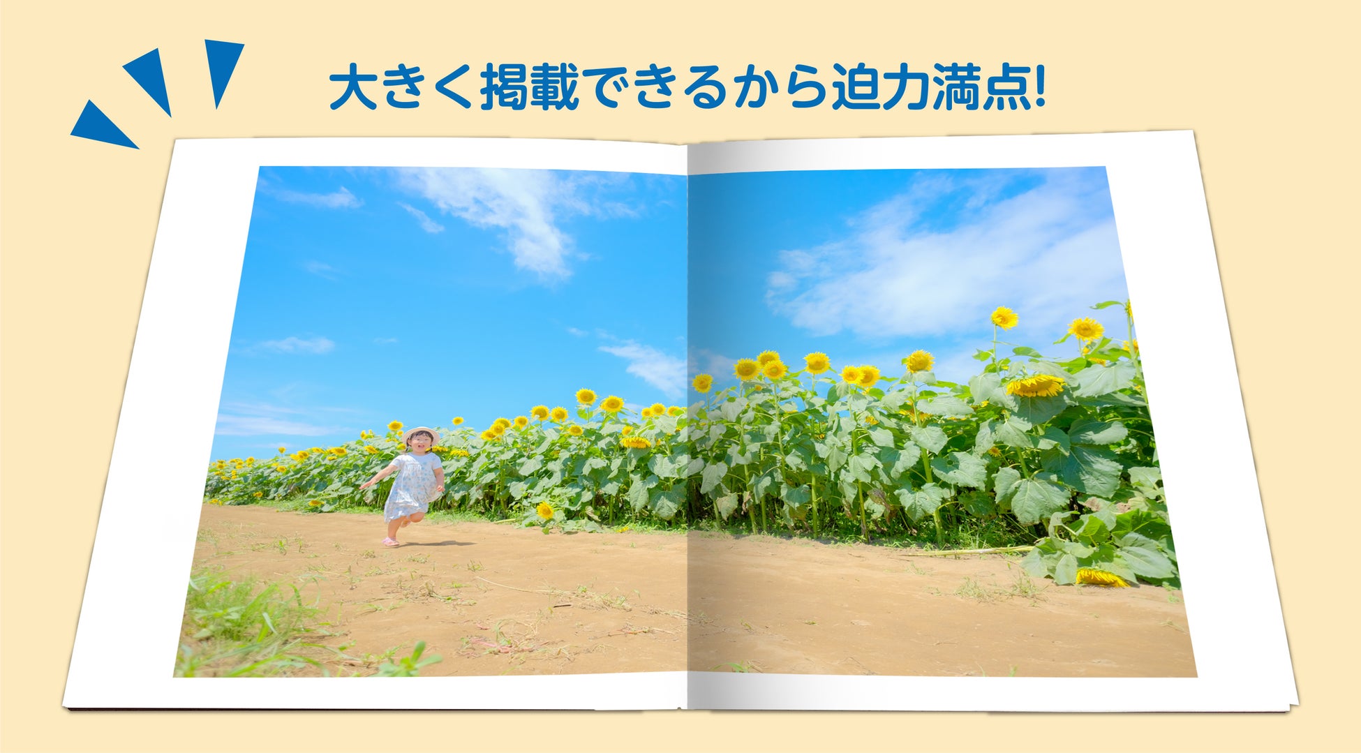 横に広げられるので、ページをまたいだ写真レイアウトが可能です。