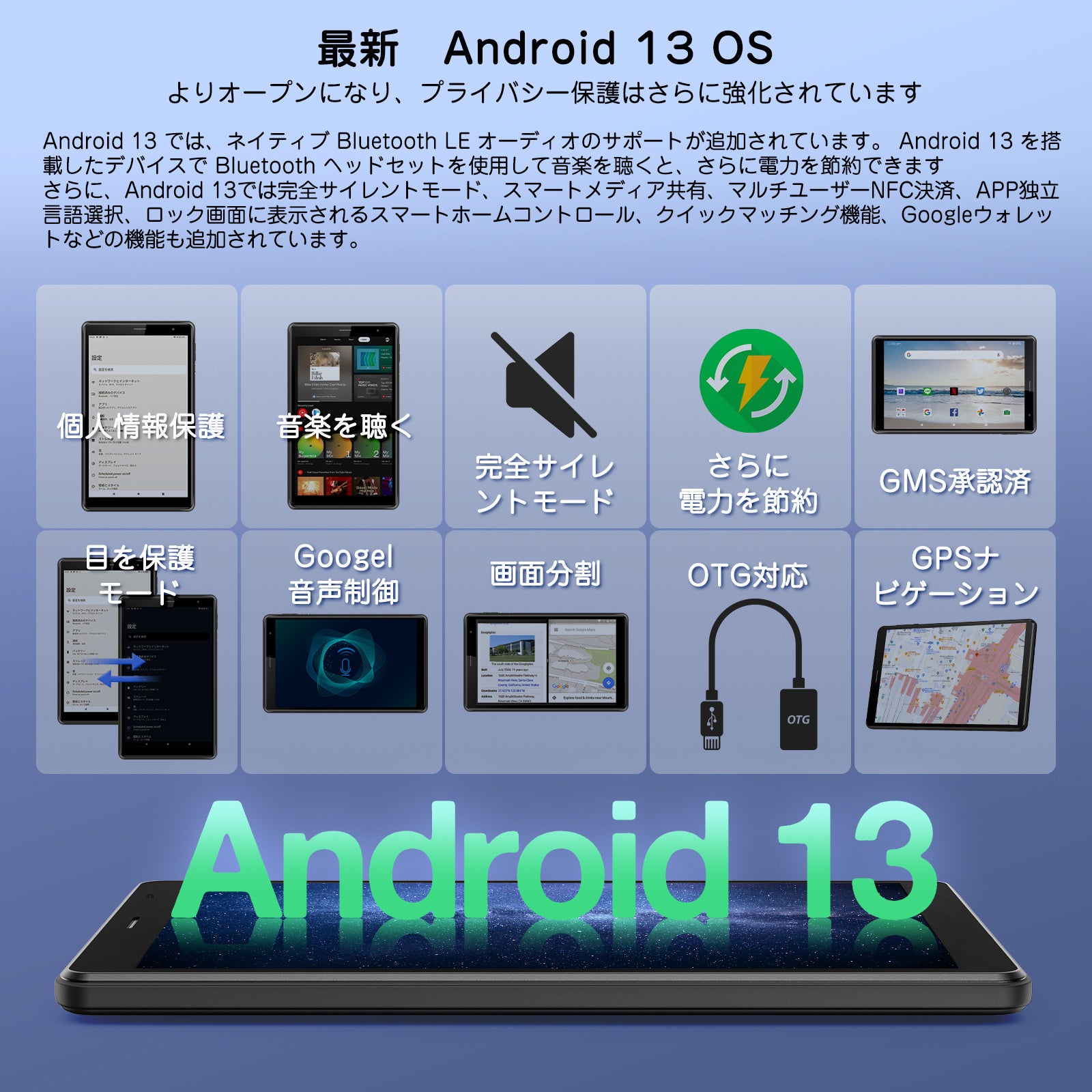 4G LTE通信&5G/2.4G Wi-Fiモデルタブレット