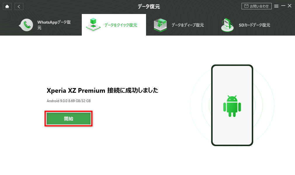 「デバイスからデータをクイック復元」を選択すると、デバイスをルート化せずに失われたデータをすばやく取得できます。または「デバイスからデータをディープ復元」モードを使用してスキャンを行い、最も高い成功率で失われたデータを見つけることができます。