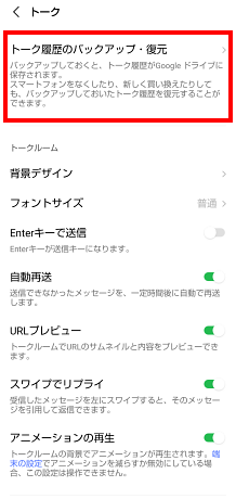 2.「トーク履歴のバックアップ・復元」をタップします。