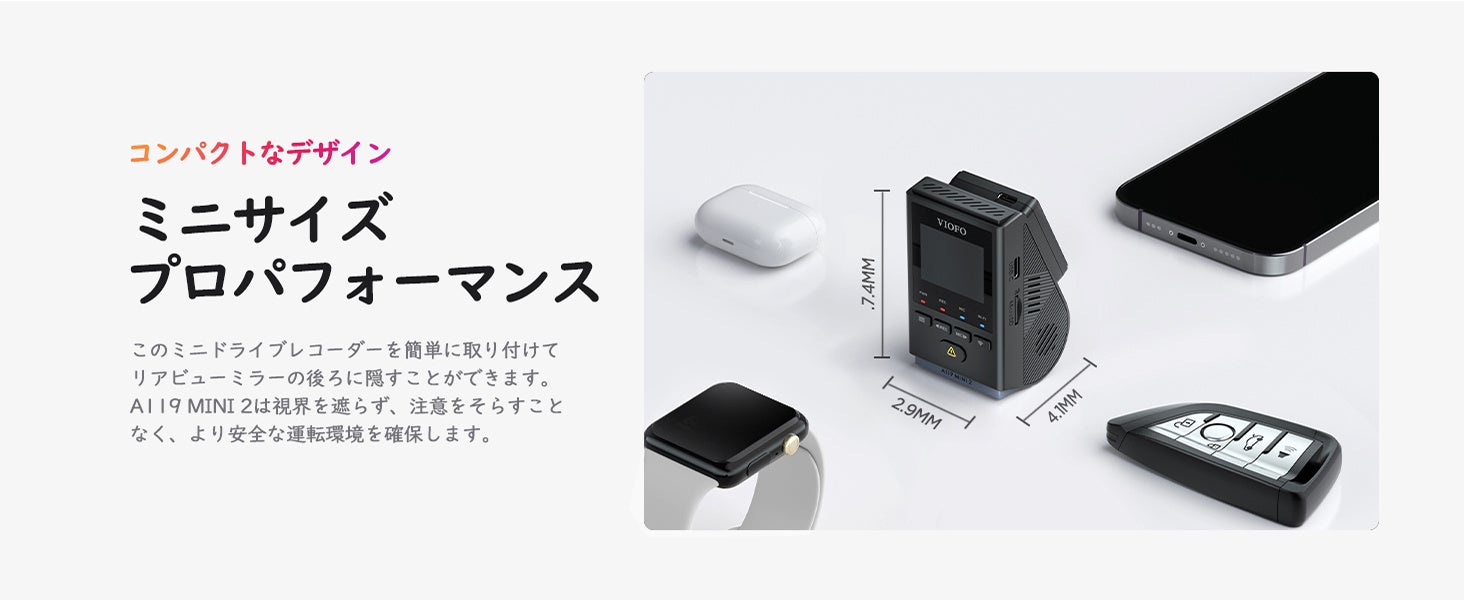A119MINI 2は、小さなボディにコンパクトな設計を採用していますが、その性能は優れています。高品質の映像を提供するために、Sony STARVIS 2イメージセンサーを搭載しており、暗い環境でも明るくクリアな映像を記録することができます。また、広い視野角を持ち、車の周囲の状況を広範囲に捉えます。さらに、A119MINI 2は使いやすさにもこだわっています。簡単な取り付けと直感的な操作インターフェースを備えており、初めての方でも簡単に使用することができます。