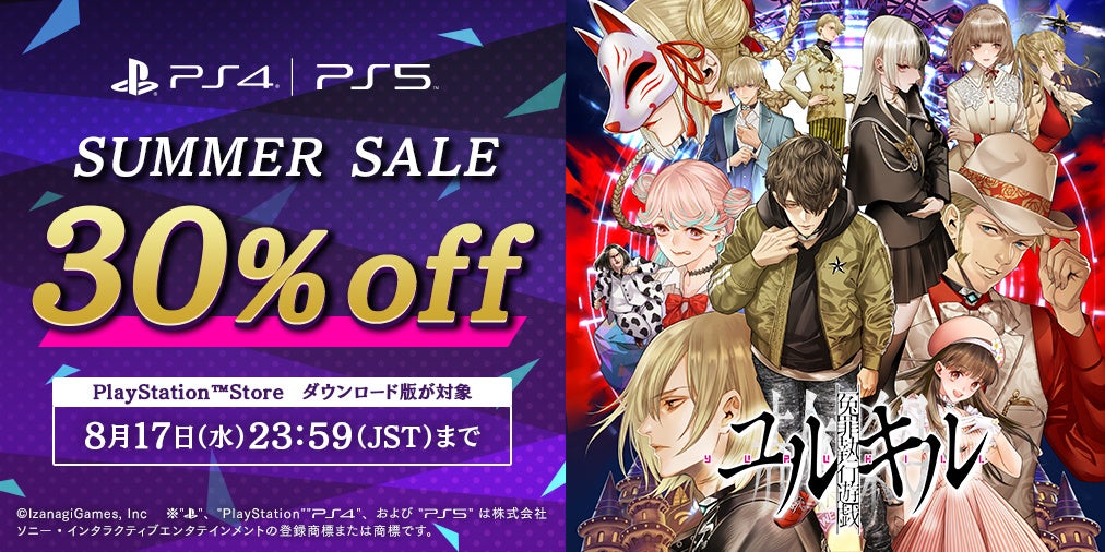 セール期間中、冤罪脱出ADV&弾幕STG「冤罪執行遊戯ユルキル」のPS4/PS5のダウンロード版が、30%オフの特別価格で販売されます。