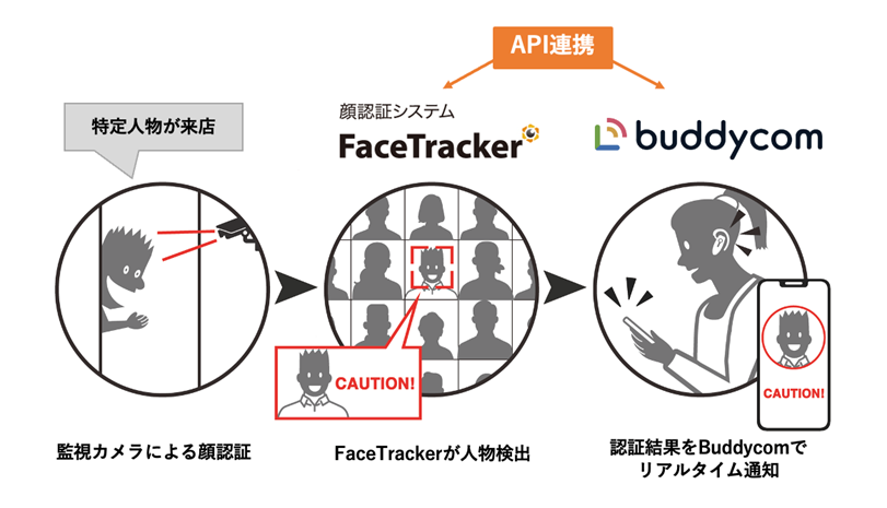 インカム等の現場コミュニケーションツールを導入している小売店舗や飲食店、サービス店舗、介護施設等において、従業員はお客様情報やトラブルなど多種多様な情報や状況をやりとりし、都度対応しています。情報共有はスムーズさとスピード感、ストレスなく使用できることが求められる一方、従業員が見たもの、聞いたものを共有するため、リピート客や助けが必要なお客様、過去にトラブルがあったお客様にすぐに気付けない等の事象があるのも事実でした。こういった課題を解決する一歩として、セキュアの顔認証システムとサイエンスアーツが提供するライブコミュニケーションプラットフォーム「Buddycom」とが連携したシステム開発をすることといたしました。