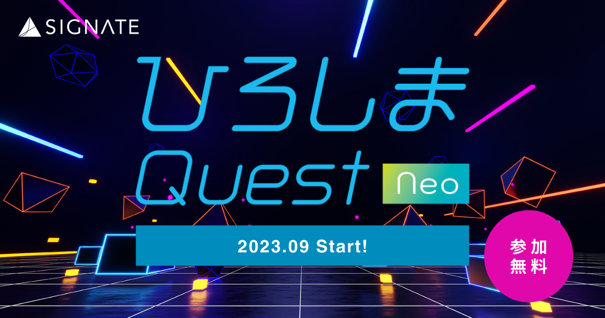 「ひろしまQuest」は、県内のデジタルネイティブ層を対象とし、県内の様々な産業・地域課題をデータ活用によって解決する人材を育て、広島県のDXをアクセラレートする事業です。SIGNATEは、DXリテラシーやデータ活用スキル習得のためのe-learning提供、ハンズオン研修実施、データ分析コンペティション開催により人材の活躍の場の提供やより実践的な人材開発に貢献してきました。