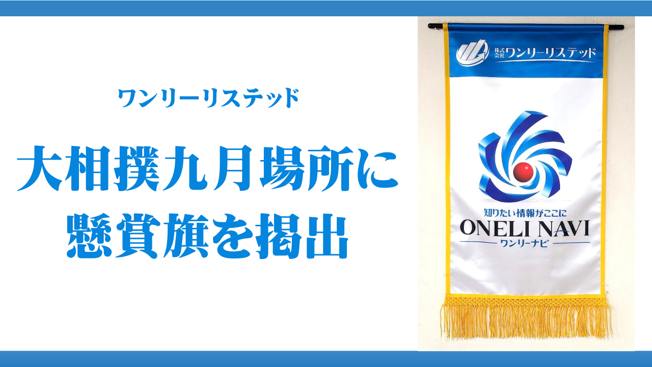 ワンリーリステッドは日本が世界に誇る『おもてなし』の心を大切に考え、国技・伝統・文化を伝え盛り上げることを使命としており、懸賞旗には、日本人が作った日本人用の今までにない日本製検索プラットフォーム「ONELI NAVI(ワンリーナビ)」のロゴをデザインしています。