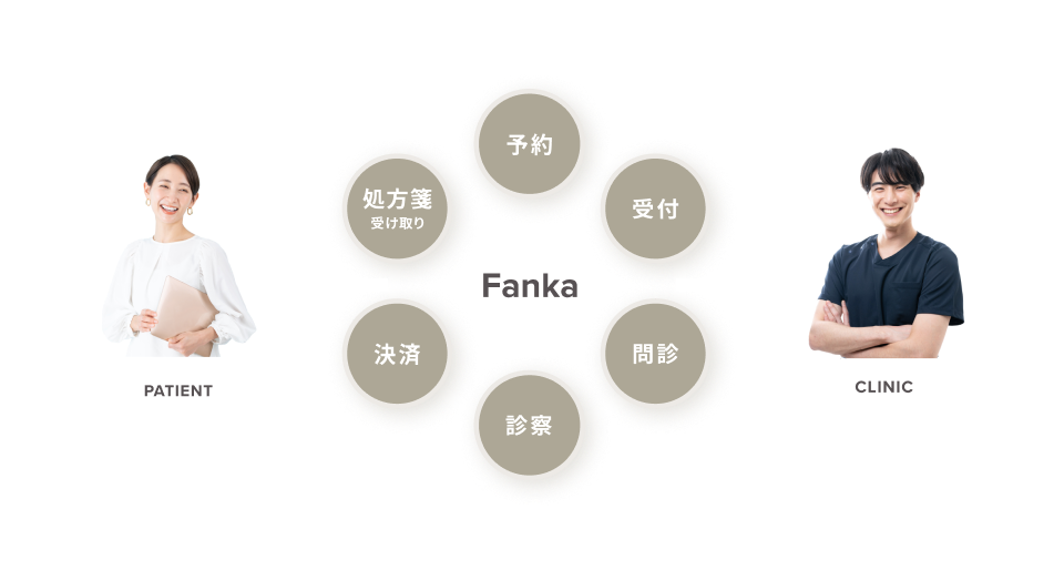 Fankaは、自由診療を行う保険医療機関向けの予約・問診・決済・LINE・電子カルテ連携を包括したオールワンシステムです。保険診療単体の医療機関にも対応しており、患者のファン化と収益性を両立することができます。