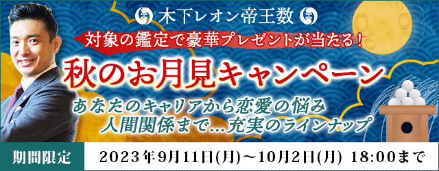 フジテレビ系列で放送中の占い番組『突然ですが占ってもいいですか?』で人気を博している木下レオン。ただいま、月額公式サイト『木下レオン◆帝王数』にて、来る9月29日が中秋の名月ということから豪華プレゼントが当たる『秋のお月見キャンペーン』を開催中です。キャンペーン期間中、対象の占いメニューを購入して特設ページから応募すると、あなたの誕生石を使ったプレスレットが抽選で当たります。ぜひこの機会にお試しください。