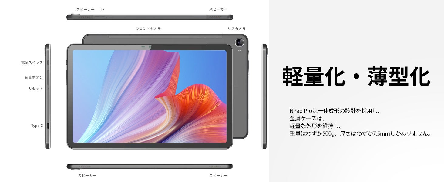 【4G LTE通話対応Wi-Fiモデル+GPS搭載タブレット】このタブレットには、4G/LTEモバイル通信をサポートするSIMスロットが搭載されており、4G LTE SIMによる通話やWi-Fiも利用できます。2.4GHzおよび5GHzのWi-Fi、または4G接続を使用することで、いつでもどこでも家族や友人、パートナーとつながることができます。NPad ProタブレットではSkypeや電話、SMSを送信でき、世界があなたの手のひらの中に広がります。(デュアルSIMカードまたは1つのSIMカード+1つのSDカードをサポートしています)さらに、内蔵のGPSナビゲーションにより、位置情報を取得し、ナビゲーションを便利に利用することができます。