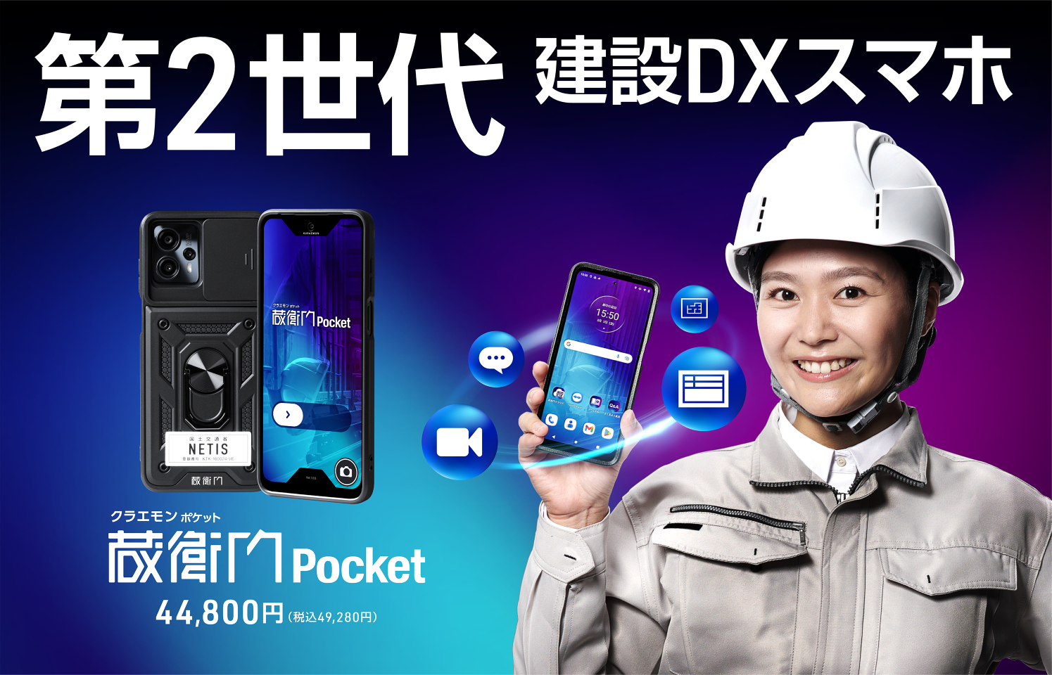 「蔵衛門」は、社用スマートフォンの導入を推進すべく、DXスマホ『蔵衛門Pocket』の第2世代を開発。第1世代と比較し、ストレージ容量は2倍の128GB、表面は高強度なパンダガラスを採用。5,000万画素の高画質な撮影が可能で、汎用性を高めました。また、スライドカメラカバーのついた堅牢ケースを標準装備し、頑丈さも安心。引き続き、中小企業でも導入しやすい価格かつ、標準で施工管理アプリ『蔵衛門クラウドApp』を搭載しています。建設業のすべての企業がスマートデバイスを導入し、建設DXの実現ができるよう「蔵衛門」は支援してまいります。