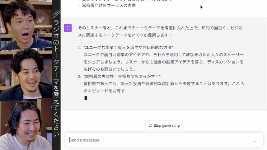 ・内容:「ChatGPTをうまく使うコツ」や「深津式の質問方法」など、アイディアの出し方やマニュアル作成方法などの実例を交えた勉強会。ChatGPTを今すぐ使いたくなるノウハウを学ぶことができます。