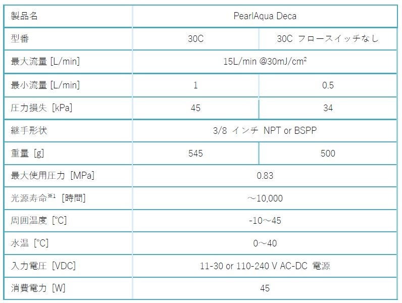 <PearlAqua Deca 30C 製品仕様 >