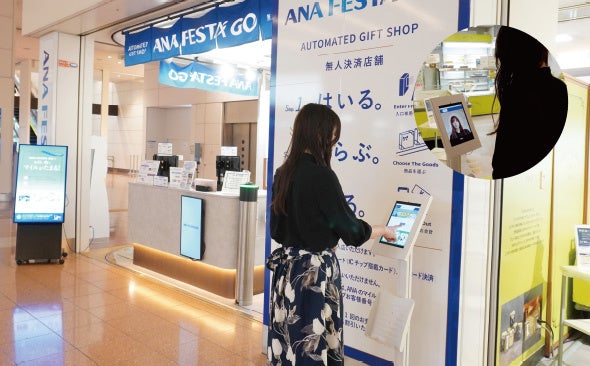 2023年2月に協業を発表してから第一弾の取り組みとして、ANA Digital Gate株式会社、全日空商事株式会社、ANA FESTA株式会社(以下、ANA FESTA)、日立の4社が2023年3月29日から行っている、ANA FESTAの店舗来店時の顔認証でマイルが貯まる「顔認証スタンプラリー」の実証実験において、パナソニック コネクトの顔認証技術が活用されています。