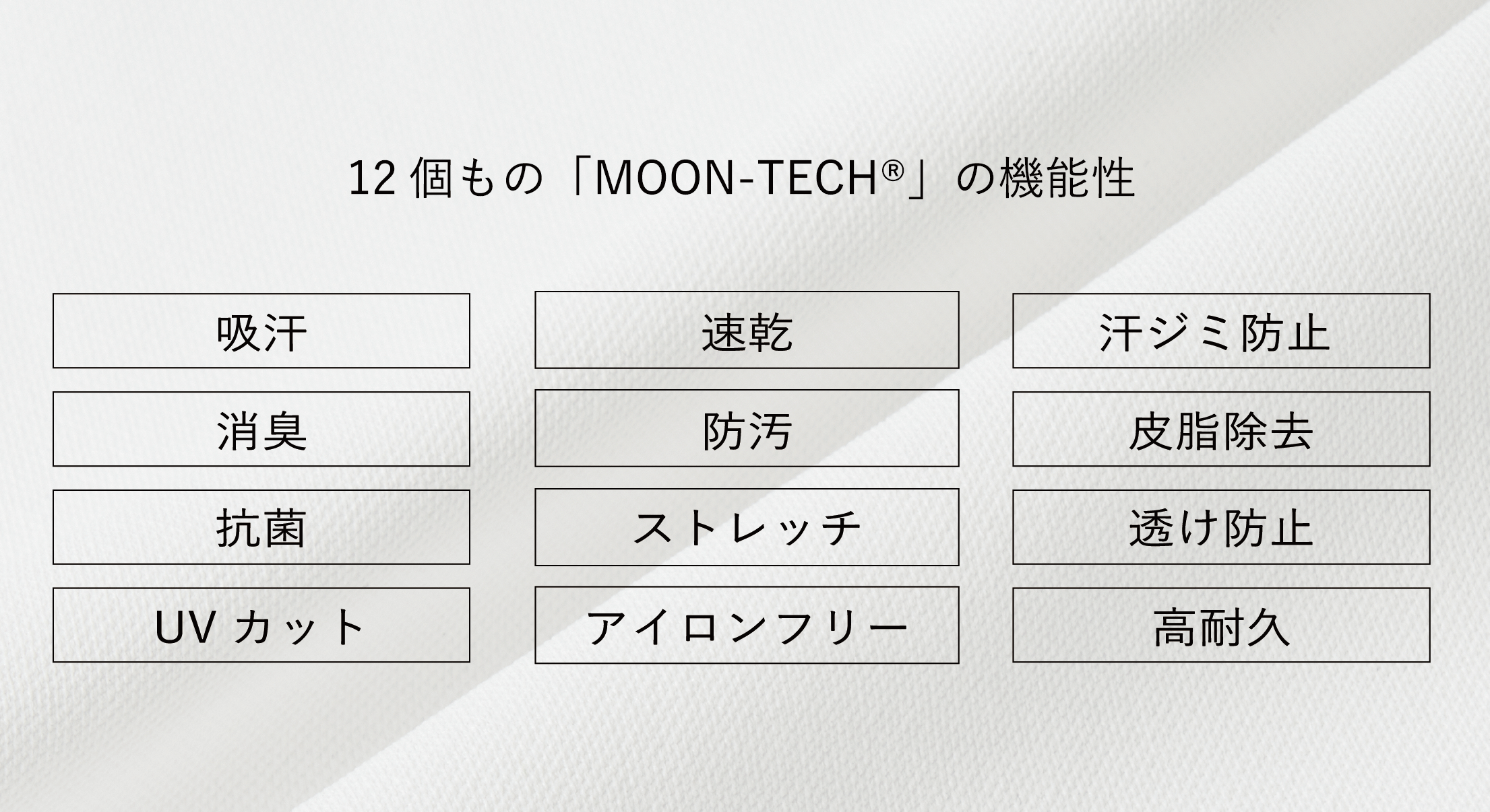 「MOON-TECH®」は、東レの先端素材「フィールドセンサー®EX」をベースに、長期間の閉鎖された環境となる宇宙ステーションでの快適な生活のために開発されたJAXA・東レ共同開発宇宙技術など12個におよぶ「過剰なほどの機能性」を高いレベルで搭載した最新の先端素材です。