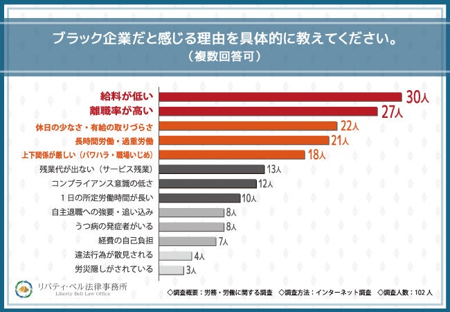 ブラック企業だと感じる理由として『給料が低い』『離職率が高い』の回答多数