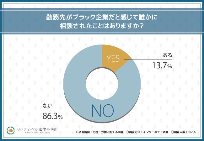 勤務先がブラック企業だと感じても誰かに相談された方は13.7%のみ